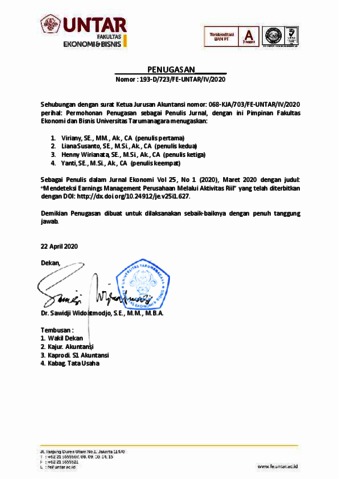 Viriany, Viriany and Susanto, Liana and wiranata, Henny and YANTI, YANTI Mendeteksi Earnings Management Perusahaan Melalui Aktivitas RIIL. Mendeteksi Earnings Management Perusahaan Melalui Aktivitas RIIL.