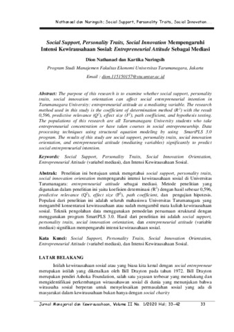 Nathanael, Dion Social Support, Personality Traits, Social Innovation Mempengaruhi Intensi Kewirausahaan Sosial: Entrepreneurial Attitude Sebagai Mediasi. Social Support, Personality Traits, Social Innovation Mempengaruhi Intensi Kewirausahaan Sosial: Entrepreneurial Attitude Sebagai Mediasi.
