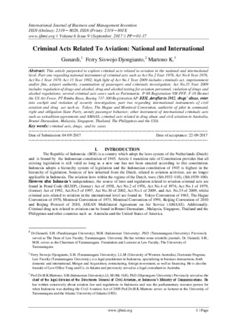 Gunardi, Gunardi (2017) Criminal Acts Related To Aviation: National and International. International Journal of Business and Management Invention, 6 (9). pp. 01-17. ISSN 2319 – 8028