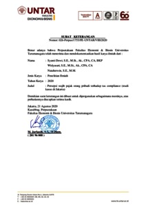 Dewi, Syanti and Widyasari, Widyasari and Nataherwin, Nataherwin PERSEPSI WAJIB PAJAK ORANG PRIBADI TERHADAP TAX COMPLIANCE. PERSEPSI WAJIB PAJAK ORANG PRIBADI TERHADAP TAX COMPLIANCE.