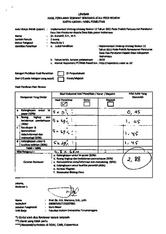 Gunardi, Gunardi (2019) Peer Review Implementasi Undang-Undang Nomor 12 Tahun 2011 Pada Praktik Penyusunan Peraturan Desa Dan Peraturan Kepala Desa Di Kabupaten Indramayu. Fakultas Hukum Universitas Tarumanagara. (Unpublished)