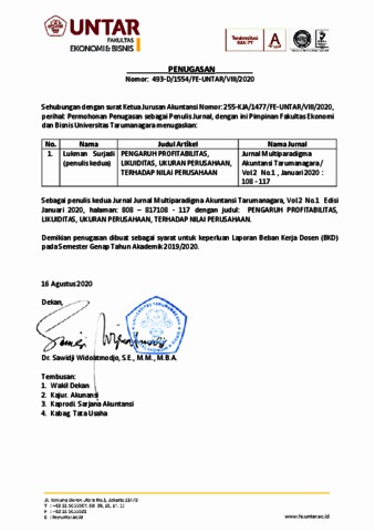 Tandanu, Andrew and Suryadi, Lukman PENGARUH PROFITABILITAS, LIKUIDITAS, UKURAN PERUSAHAAN, TERHADAP NILAI PERUSAHAAN. PENGARUH PROFITABILITAS, LIKUIDITAS, UKURAN PERUSAHAAN, TERHADAP NILAI PERUSAHAAN.