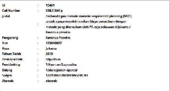 Prawiro, Xaverius (2010) Perbandingan metode material requiremnt planning (MRP) untuk upaya meminimumkan biaya persediaan dengan metode yang diterapkan oleh PT. teja sekawan di Jakarta. Skripsi thesis, Universitas Tarumanagara.