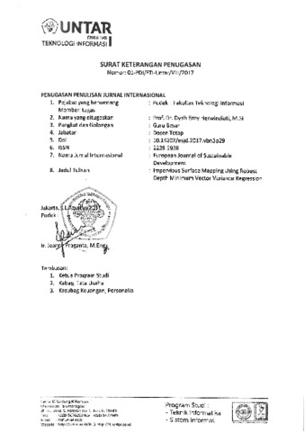Herwindiati, Dyah E. and Hendryli, Janson and Hiryanto, Lely Impervious Surface Mapping Using Robust Depth Minimum Vector Variance Regression. Impervious Surface Mapping Using Robust Depth Minimum Vector Variance Regression.