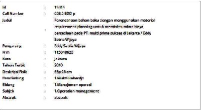 Satria Wijaya, Eddy (2010) Perencanaan bahan baku dengan menggunakan material requirement planning untuk meminimumkan biaya persediaan pada PT. multi prima sukses di Jakarta. Skripsi thesis, Universitas Tarumanagara.