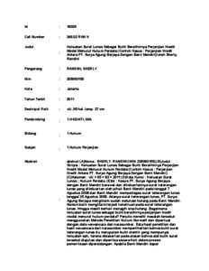 perjanjian kredit. (F)Daftar Acuan :19 (1984 - 2009) (G)Pembimbing