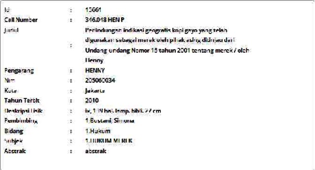Henny, Henny (2010) Perlindungan indikasi geografis kopi gayo yang telah digunakan sebagai merek oleh pihak asing ditinjau dari Undang-undang Nomor 15 tahun 2001 tentang merek. Skripsi thesis, Universitas Tarumanagara.