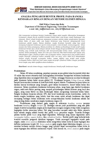 Widya Utama, Didi and Roby, Roby (2012) ANALISA PENGARUH BENTUK PROFIL PADA RANGKA KENDARAAN RINGAN DENGAN METODE ELEMEN HINGGA. In: Seminar Nasional Mesin dan Industri 7, Jakarta-Indonesia.