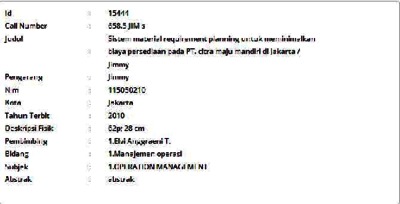 Jimmy, Jimmy (2010) Sistem material requirement planning untuk meminimalkan biaya persediaan pada PT. citra maju mandiri di Jakarta. Skripsi thesis, Universitas Tarumanagara.
