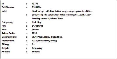 Ling, Giok (2010) Studi mengenai faktor-faktor yang mempengaruhi mobilitas penghuni pada perumahan kelas menengah, studi kasus: 4 housing estate di Jakarta Barat. Masters thesis, Universitas Tarumanagara.
