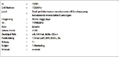 Lingga Jaya, Mirza (2010) Studi perilaku konsumen wisatawan di Surabaya yang berwisata ke wisata bahari Lamongan. Masters thesis, Universitas Tarumanagara.