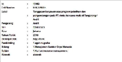 Andri, Andri (2010) Tanggapan karyawan atas program pelatihan dan pengembangan pada PT. rimba kencana mulia di Tangerang. Skripsi thesis, Universitas Tarumanagara.