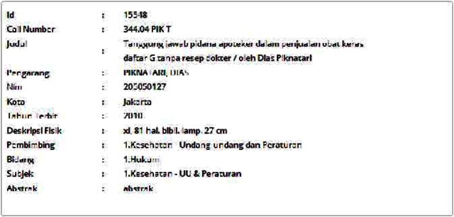 Piknatari, Dias (2010) Tanggung jawab pidana apoteker dalam penjualan obat keras daftar G tanpa resep dokter. Skripsi thesis, Universitas Tarumanagara.