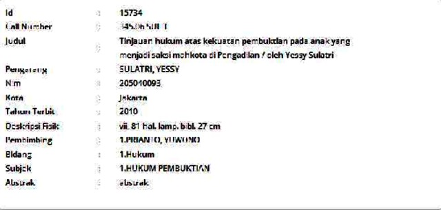 Sulatri, Yessy (2010) Tinjauan hukum atas kekuatan pembuktian pada anak yang menjadi saksi mahkota di Pengadilan. Skripsi thesis, Universitas Tarumanagara.