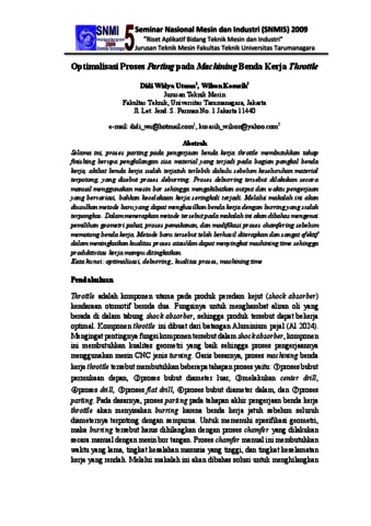 Widya Utama, Didi and Kosasih, Wilson (2009) Optimalisasi Proses Parting pada Machining Benda Kerja Throttle. In: Seminar Nasional Mesin dan Industri 5, 8 October 2009, Jakarta.