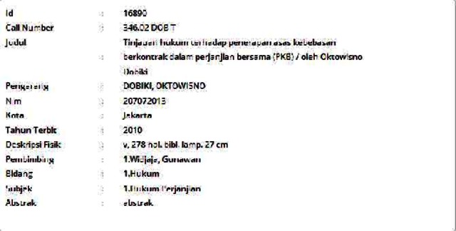 Dobiki, Oktowisno (2010) Tinjauan hukum terhadap penerapan asas kebebasan berkontrak dalam perjanjian bersama (PKB). Masters thesis, Universitas Tarumanagara.