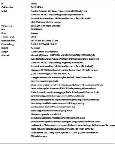 Lenggu, Matthew Michele (2012) Analisa Putusan Mahkamah Internasional (ICJ Judgment General List No. 143) Tentang Sengketa Jurisdictional Immunities Antara Republik Federal Jerman v. Republik Italia. Skripsi thesis, Universitas Tarumanagara.