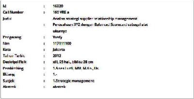 Vredy, Vredy (2012) Analisa strategi supplier relationship management Perusahaan XYZ dengan Balanced Scorecard sebagai alat ukurnya. Masters thesis, Universitas Tarumanagara.