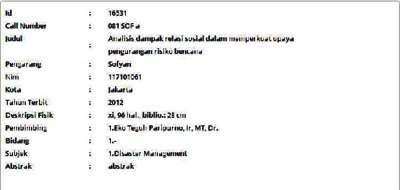 Sofyan, Sofyan (2012) Analisis dampak relasi sosial dalam memperkuat upaya pengurangan risiko bencana. Masters thesis, Universitas Tarumanagara.