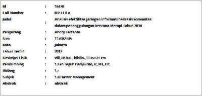 Fertanto, Andry (2012) Analisis efektifitas jaringan informasi berbasis komunitas dalam penanggulangan bencana Merapi Tahun 2010. Masters thesis, Universitas Tarumanagara.