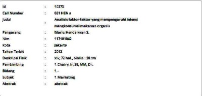 Hendarwan S, Mario (2012) Analisis faktor-faktor yang mempengaruhi intensi mengkonsumsi makanan organik. Masters thesis, Universitas Tarumanagara.