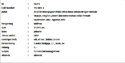 Melissa, Melissa (2012) Analisis kinerja portofolio reksa dana saham dengan Metode Sharpe, Treynor, Jensen dan Information Ratio Periode September 2007 - Agustus 2012. Masters thesis, Universitas Tarumanagara.