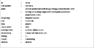 Saputra, Riayanto (2012) Analisis pemberian kredit dengan menggunakan Metode Credit Scoring untuk mengurangi kredit macet pada perusahaan multifinance PT XYZ. Masters thesis, Universitas Tarumanagara.