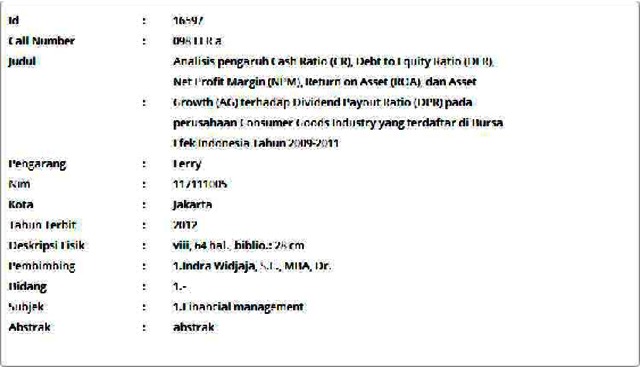 Ferry, Ferry (2012) Analisis pengaruh Cash Ratio (CR), Debt to Equity Ratio (DER), Net Profit Margin (NPM), Return on Asset (ROA), dan Asset Growth (AG) terhadap Dividend Payout Ratio (DPR) pada perusahaan Consumer Goods Industry yang terdaftar di Bursa Efek Indonesia Tahun 2009-2011. Masters thesis, Universitas Tarumanagara.