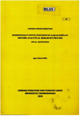 Arifin, Agus Zainul (2010) Pemeringkat untuk portofolio saham dengan metode analytical hierarchy process. LPPI.