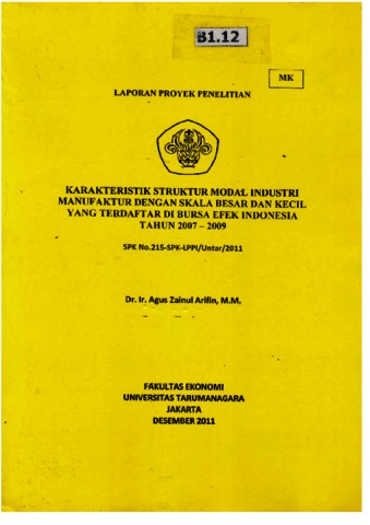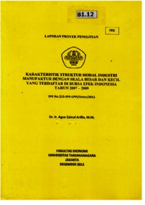 Arifin, Agus Zainul (2011) Karakteristik struktur modal industri manufaktur dengan skala besar dan kecil yang terdaftar di bursa efek indosnesia tahun 2007-2009. LPPI.