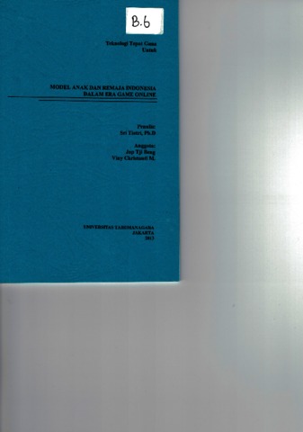 Tiatri, Sri and Jap, Tji Beng and Christanti, Viny (2013) Model Anak dan Remaja Indonesia dalam Era Game Online. Lembaga Penelitian dan Publikasi Ilmiah Universitas Tarumanagara, Jakarta.