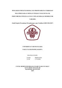 Hernanda, Hernanda (2019) PENGARUH STRUKTUR MODAL DAN PROFITABILITAS TERHADAP NILAI PERUSAHAAN DENGAN TINGKAT SUKU BUNGA BI, PERTUMBUHAN PENJUALAN DAN INFLASI SEBAGAI MODERATOR VARIABEL (Studi Empiris Perusahaan Pertambangan yang Terdaftar di BEI 2014-2017). Masters thesis, Universitas Tarumanagara.