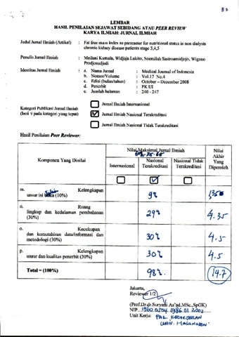 Text (Peer Review Fat free mas index as parameter for nutritional status in non dialysis chronic kidney disease patients stage 3,4,5)