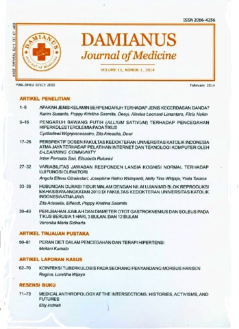 Kumala, Meilani (2014) Peran Diet Dalam Pencegahan dan Terapi Hipertensi. Damianus Journal Of Medicine, 13 (1). pp. 50-61. ISSN 2086-4256