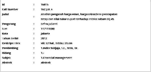 Julianti, Erfira (2012) Analisis pengaruh harga emas, harga reksadana pendapatan tetap dan nilai tukar rupiah terhadap indeks saham LQ 45. Masters thesis, Universitas Tarumanagara.