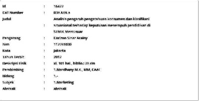 Arainy, Corizon Sinar (2012) Analisis pengaruh pengetahuan konsumen dan klasifikasi situasional terhadap keputusan menempuh pendidikan di STMIK Mercusuar. Masters thesis, Universitas Tarumanagara.