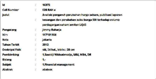 Raharja, Jimmy (2012) Analisis pengaruh perubahan harga saham, publikasi laporan keuangan dan perubahan suku bunga SBI terhadap volume perdagangan saham emiten LQ45. Masters thesis, Universitas Tarumanagara.