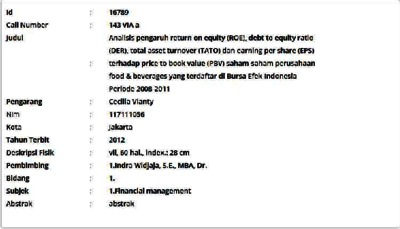 Vianty, Cecilia (2012) Analisis pengaruh return on equity (ROE), debt to equity ratio (DER), total asset turnover (TATO) dan earning per share (EPS) terhadap price to book value (PBV) saham-saham perusahaan food & beverages yang terdaftar di Bursa Efek Indonesia Periode 2008-2011. Masters thesis, Universitas Tarumanagara.