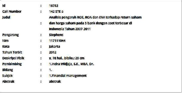 Stephens, Stephens (2012) Analisis pengaruh ROE, ROA dan EVA terhadap return saham dan harga saham pada 5 bank dengan aset terbesar di Indonesia Tahun 2007-2011. Masters thesis, Universitas Tarumanagara.
