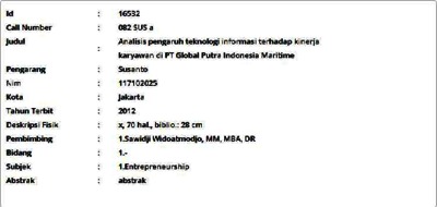 Susanto, Susanto (2012) Analisis pengaruh teknologi informasi terhadap kinerja karyawan di PT Global Putra Indonesia Maritime. Masters thesis, Universitas Tarumanagara.