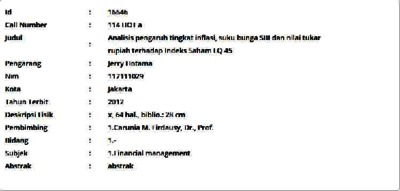Hotama, Jerry (2012) Analisis pengaruh tingkat inflasi, suku bunga SBI dan nilai tukar rupiah terhadap Indeks Saham LQ 45. Masters thesis, Universitas Tarumanagara.