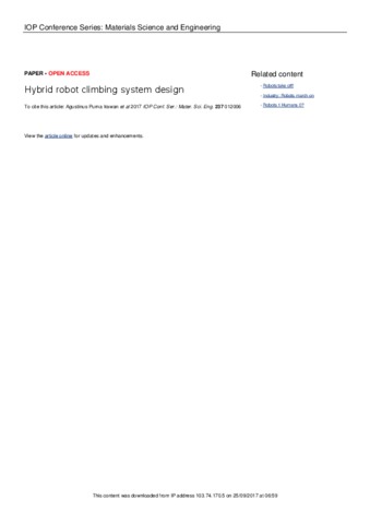 Purna Irawan, Agustinus and Halim, Agus and Kurniawan, Hengky (2017) Hybrid robot climbing system design. IOP Conference Series: Materials Science and Engineering.