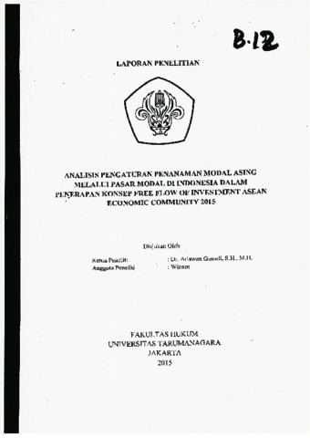 Gunadi, Ariawan (B.13) Analisis pengaturan penanaman modal Asing Melalui Pasar Modal di Indonesia Dalam Penerapan Konsep Free Flow of Investment Asean Economic Community 2015. Analisis pengaturan penanaman modal Asing Melalui Pasar Modal di Indonesia Dalam Penerapan Konsep Free Flow of Investment Asean Economic Community 2015.