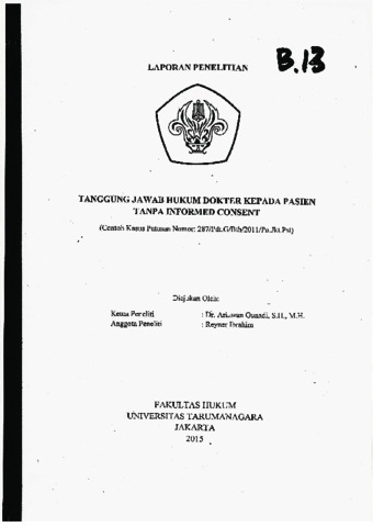 Gunadi, Ariawan (B.14) Tanggung Jawab Hukum Dokter Kepada Pasien Tanpa Informed Consent. Tanggung Jawab Hukum Dokter Kepada Pasien Tanpa Informed Consent.