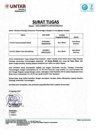 Tiatri, Sri Peer Review - Sri Tiatri, PhD., Psi. Peer Review. (Unpublished)