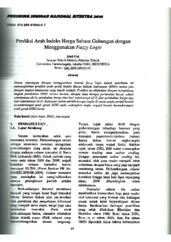Fat, Joni (2010) Prediksi Arah Indeks Harga Saham Gabungan dengan Menggunakan Fuzzy Logic. Prosiding Seminar Nasional RITEKTRA 2010.
