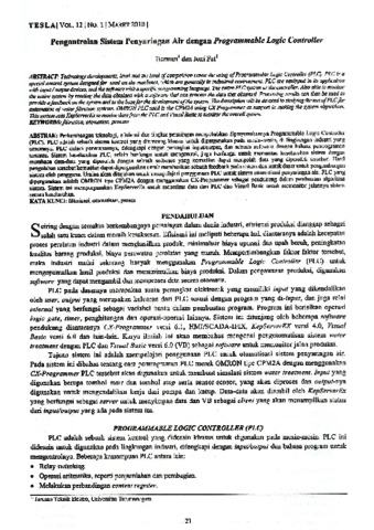 Herman, Herman and Fat, Joni (2010) Pengontrolan Sistem Penyaringan Air Dengan Programmable Logic Controller. JURNAL TESLA, 12 (1). pp. 21-26.
