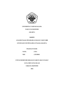 Lisa, Lisa (2016) Analisis pajak penghasilan pasal 23 tahun 2008 (study kasus pt petnesia resindo di pengadilan pajak jakarta ) / Lisa. Skripsi thesis, Universitas Tarumanagara.