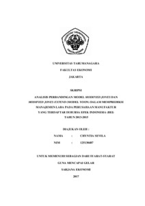 Sevila, Chyntia (2017) Analisis perbandingan model modified jones dengan model modified jones extend (yoon) dalam memprediksi manajemen laba pada perusahaan manufaktur di Bursa Efek Indonesia tahun 2013-2015 / Chyntia Sevila. Skripsi thesis, Universitas Tarumanagara.