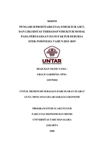 Gardenia, Grace (2020) PENGARUH PROFITABILITAS, STRUKTUR ASET, DAN LIKUIDITAS TERHADAP STRUKTUR MODAL PADA PERUSAHAAN MANUFAKTUR DI BURSA EFEK INDONESIA TAHUN 2015-2019. Skripsi thesis, Universitas Tarumanagara.